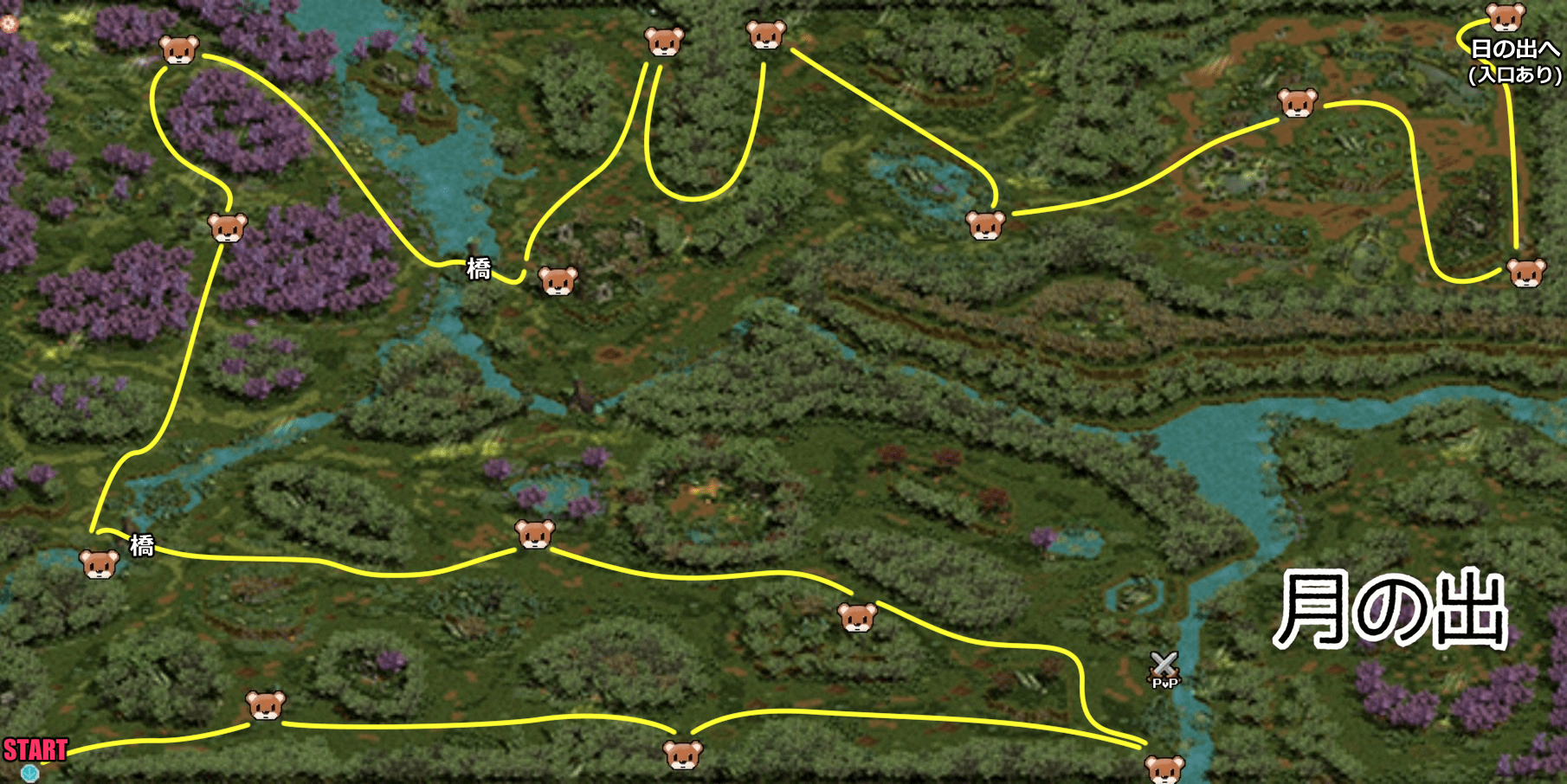 最終的に右上の日の出入口にそのまま入って日の出探索という流れが効率的