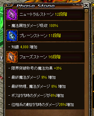 今回は反省を踏まえて魔法吸収をフェーズストーンでカバーし