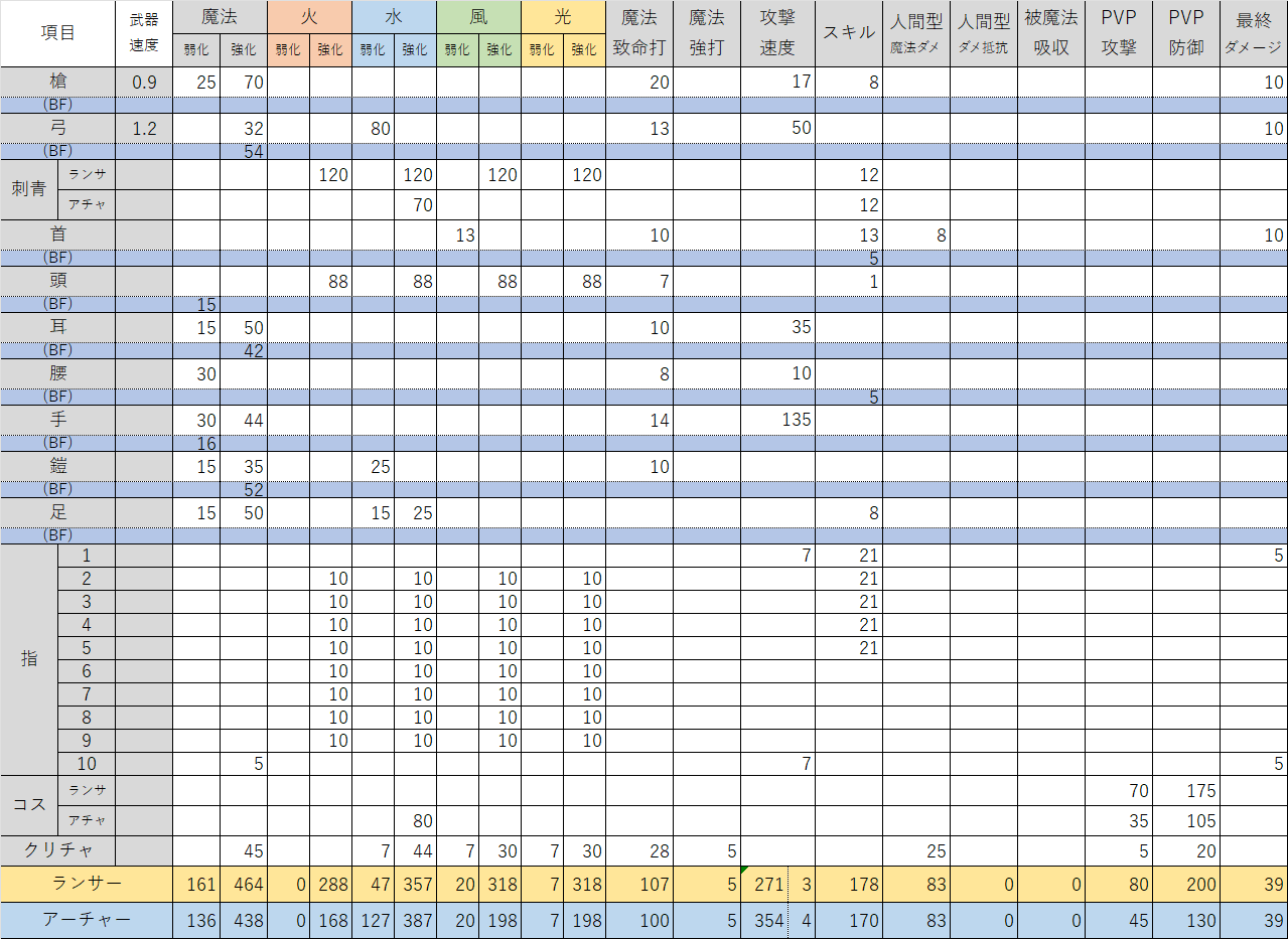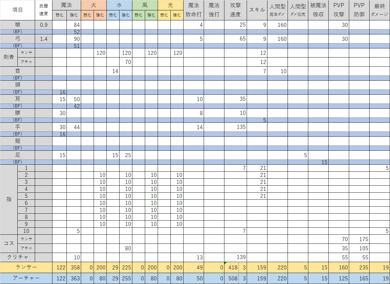 最近、装備を見直してなかったので、改めて計算機つくりました